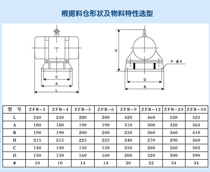 2、如圓錐形料倉因其表面剛度較大,可適當選擇振動力偏大的,棱錐形倉料可適當偏??;
